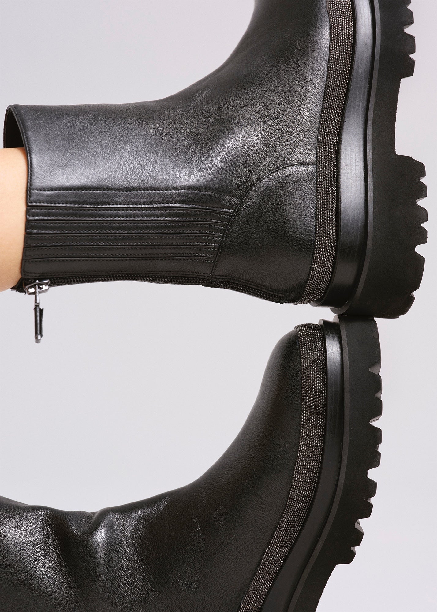 Style Mirelli Booties 50 with glittler detail in platform.