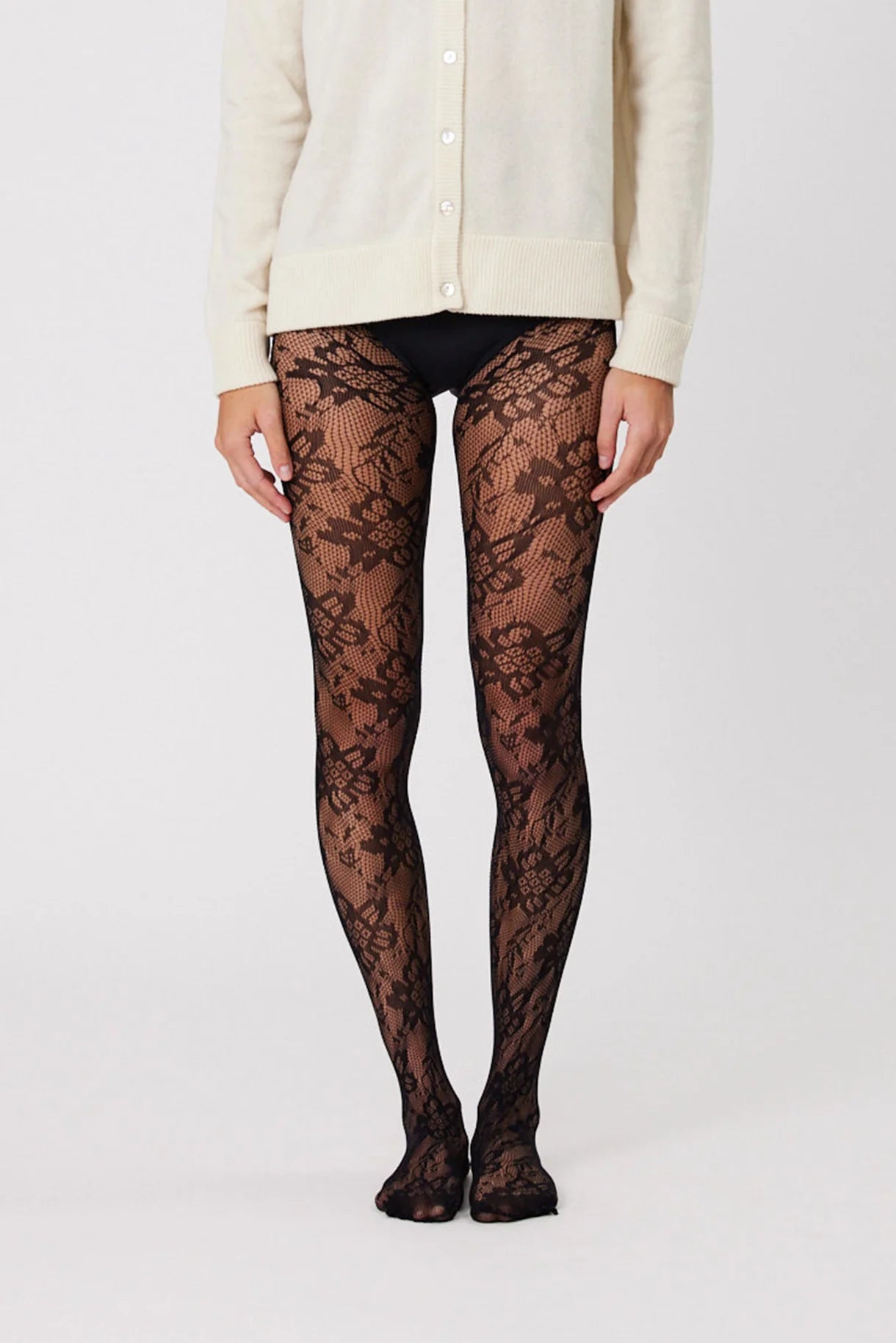 The Frankie stockings can be worn to dress up any look. The floral lace pattern that runs throughout creates a feminine edge, perfect under dresses or skirts.