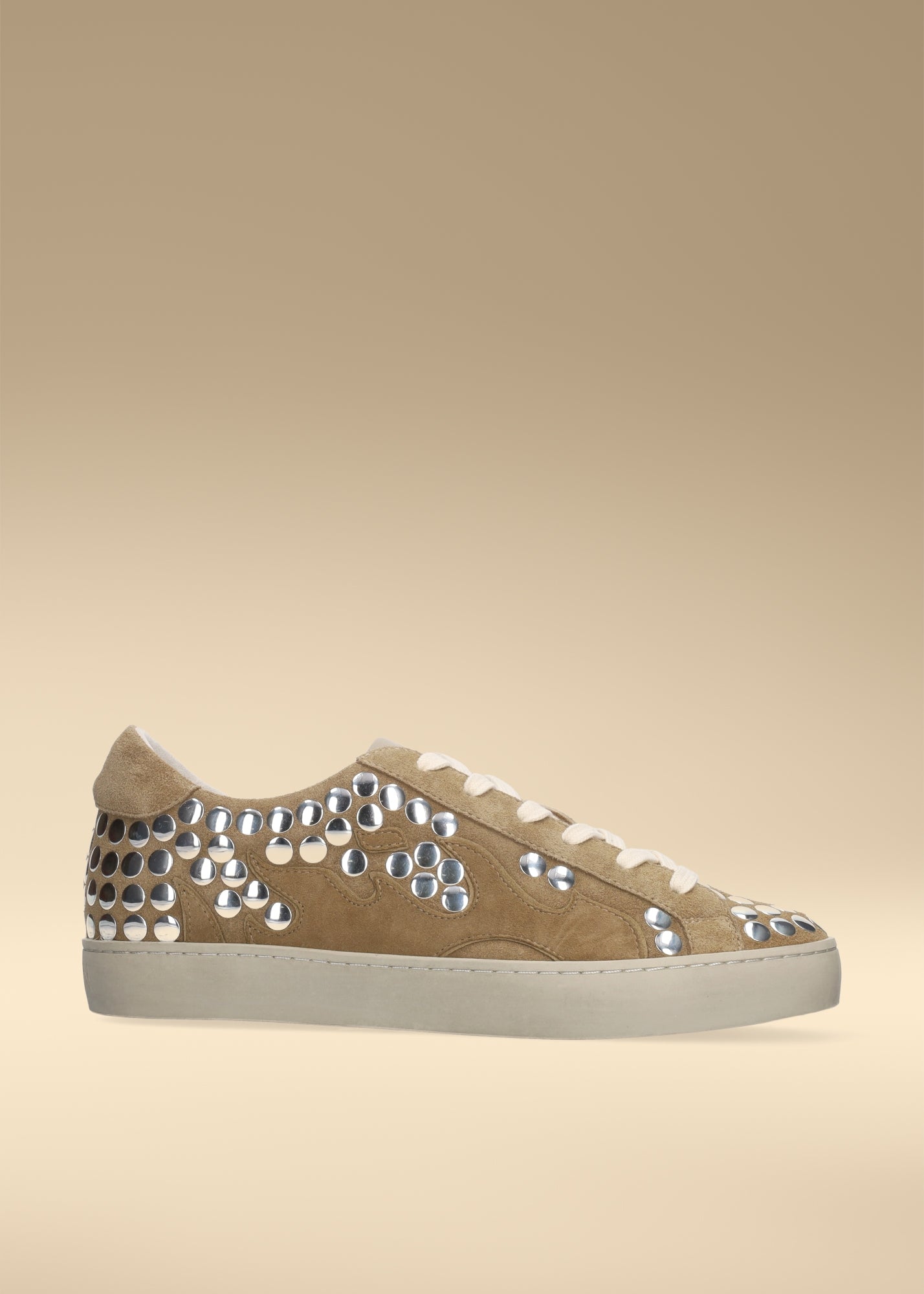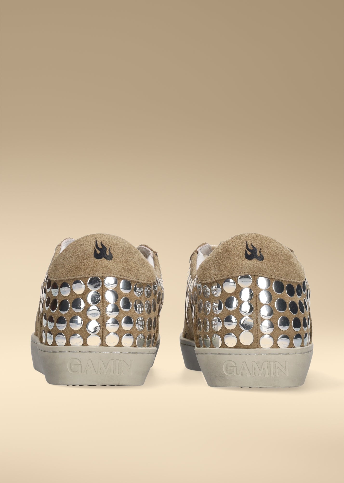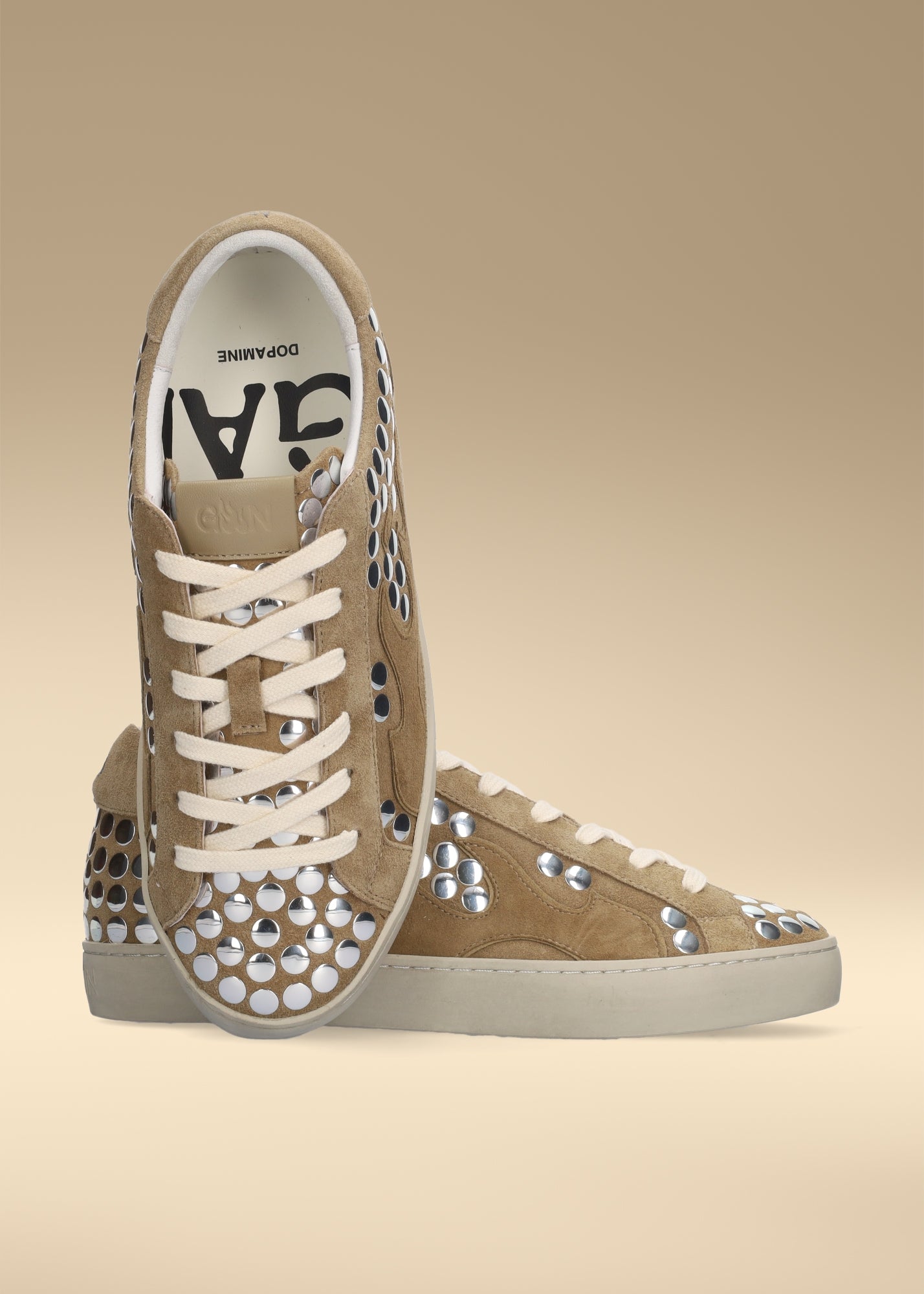Gamin women's sneakers in camel suede with silver studs. Gamin Dopamine model.