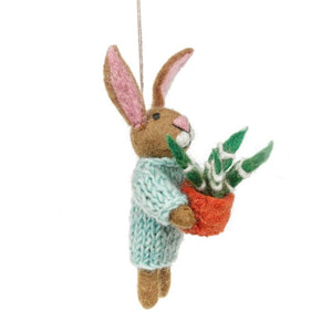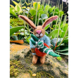 Benjamin the Bunny is a proud plant Dad, check out his gorgeous Aloe Vera! It probably is a tad easier to keep your house plants alive when they're made from 100% wool. Benjamin is dressed in his baby blue jumper, knitted by our talented artisans in Nepal. He's made from treaditional needle felting techniques, wth hand embroidered detailing on his adorable face. His Aloe Vera plant is stitched into his little paws for safe-keeping. Benjamin has been brought to life using sustainable and biodegradable materials.