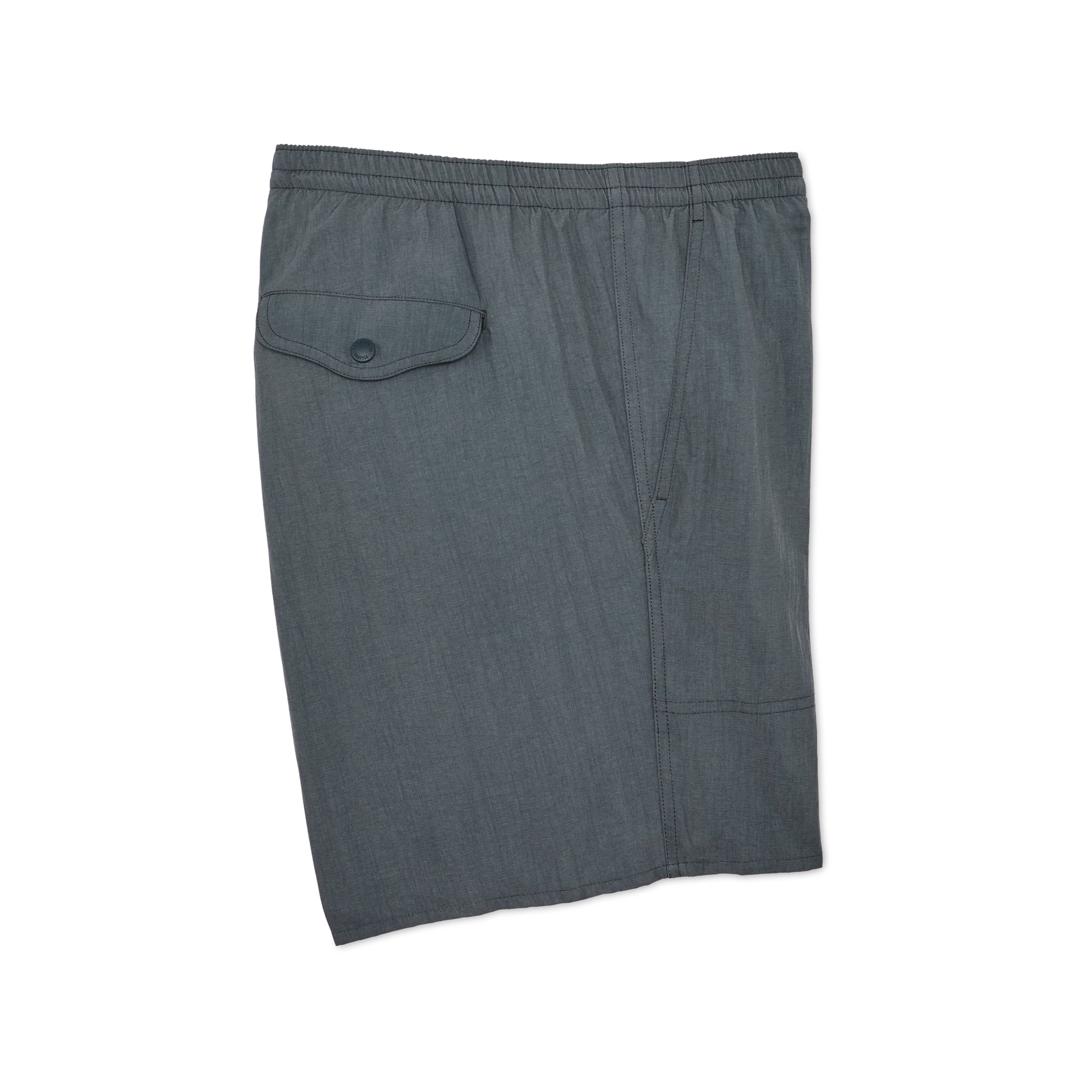 These trunks are made for action in and out of the water, whether it's mountain streams, alpine lakes, or crashing surf. The 3.5-oz. ripstop-nylon fabric is 100% recycled, dries quickly, and is treated to improve wicking performance. The front pockets are mesh-lined for instant drainage, and the single rear pocket is covered by a snapped flap. The elastic waistband with drawcord provides security without the need for a belt.